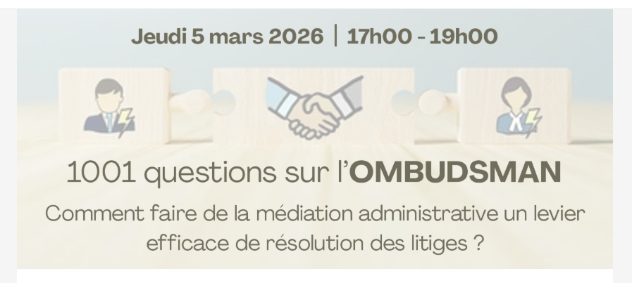 Nicolas Lagasse, Médiateur commun de la Wallonie et de la Fédération Wallonie-Bruxelles et Benoit Havet, avocat interviendront à Namur le 5 mars 2026 de 17h à 19h dans le cadre d’une conférence organisée par l’Association des juristes namurois et la Faculté de droit de l’Université de Namur sur le thème “1001 questions sur l’OMBUDSMAN :...Read More